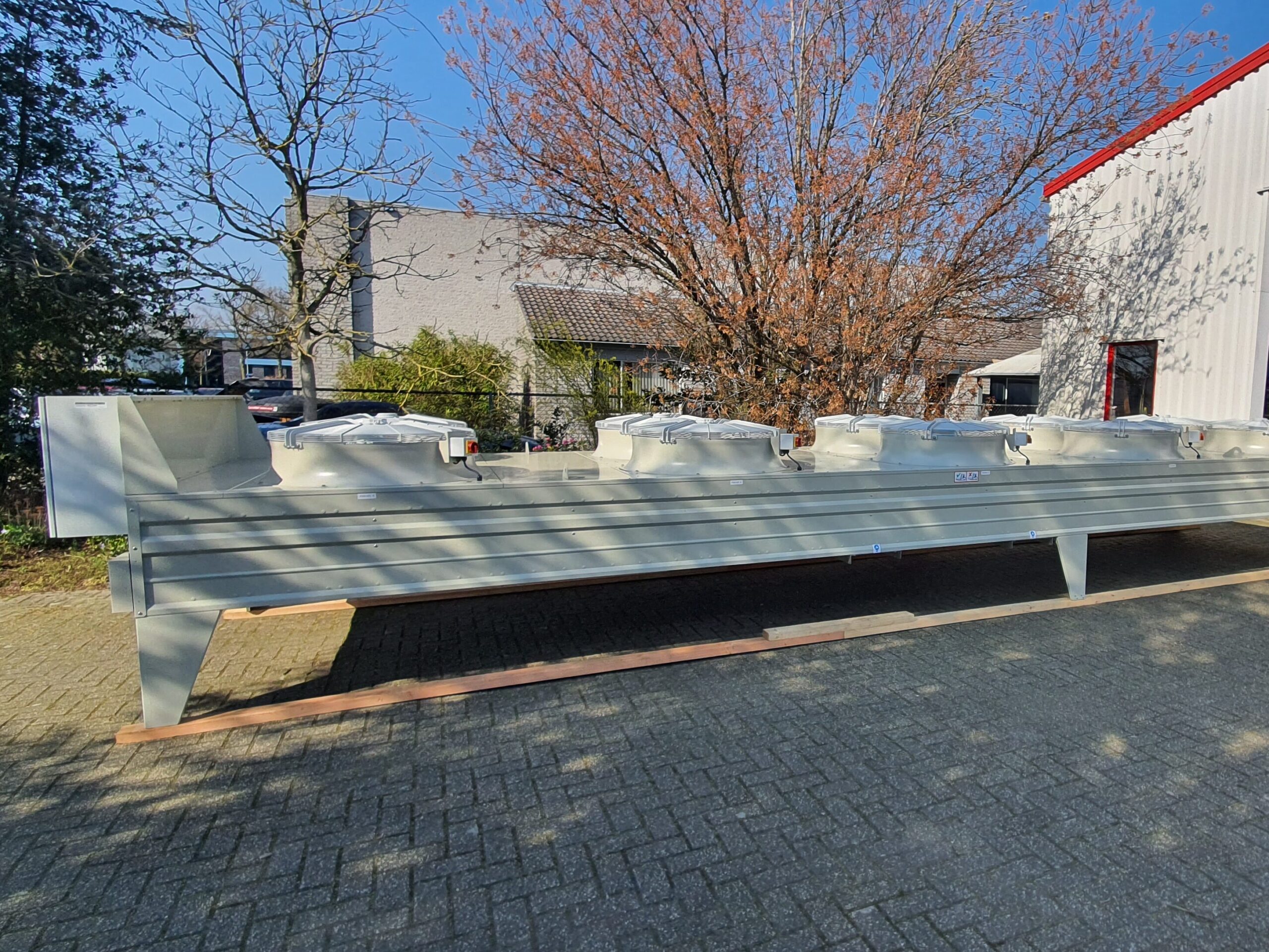Onze tafelkoelers zijn ontworpen voor een buiten opstelling bijvoorbeeld op het dak of op een container. De omkasting is van gegalvaniseerd staal, coating met UV bestendige poeder coating.